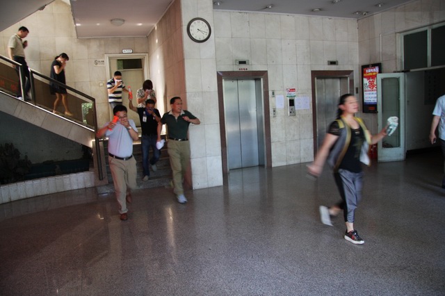模擬火災(zāi)警報(bào)響起,各位同事在各樓層安全員的疏導(dǎo)下,按照預(yù)定路線有秩序的向辦公大樓外疏散,疏散過程中無擁擠情況發(fā)生,撤離工作井然有序,演練活動取得了預(yù)想效果。