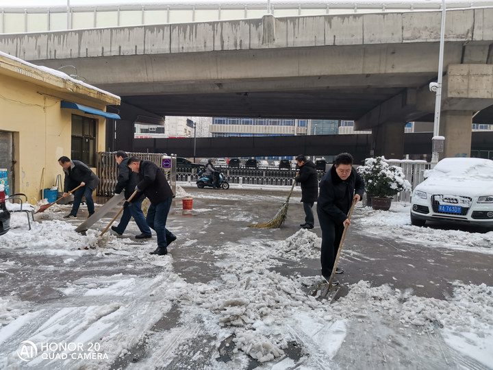 1月5日,石家莊市迎來了2020年第一場雪,大地一片銀裝素裹。然而,近一天的強(qiáng)降雪,也給人們的出行帶來了不便。為保障干部職工群眾出行安全,防止發(fā)生因雪天路滑造成意外傷害,1月6日清晨,省食品(醫(yī)保)公司領(lǐng)導(dǎo)班子帶頭,提前來到單位,積極參與掃雪除冰。大家不畏嚴(yán)寒,團(tuán)結(jié)協(xié)作,經(jīng)過一個多小時的奮力清掃,將公司門前臺階和停車場以及門口的馬路積雪全部清掃完畢,并鋪上了防滑墊,張貼了防滑警示牌,為職工們及來進(jìn)出口大廈辦事的人員提供了安全保障,也溫暖了每一位職工的心。(河北食品公司供稿)