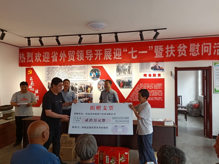 6月18至19日,在建黨99周年來臨之際,受公司黨委書記、董事長、總裁張元貞委托,省外貿(mào)資產(chǎn)公司領導班子和外部董事及部分幫扶責任人等一行9人到定點幫扶的涿鹿縣李家堡村開展“迎七一 ”主題黨日暨幫扶責任人入戶慰問活動。