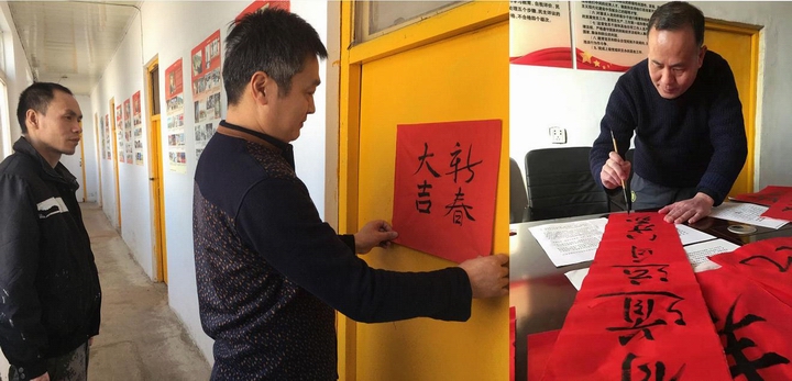 臨近春節(jié),同志們在工作之余就著手進行布置,自己動手大掃除、掛彩旗、寫春聯(lián)、貼福字,忙活的不亦樂乎。