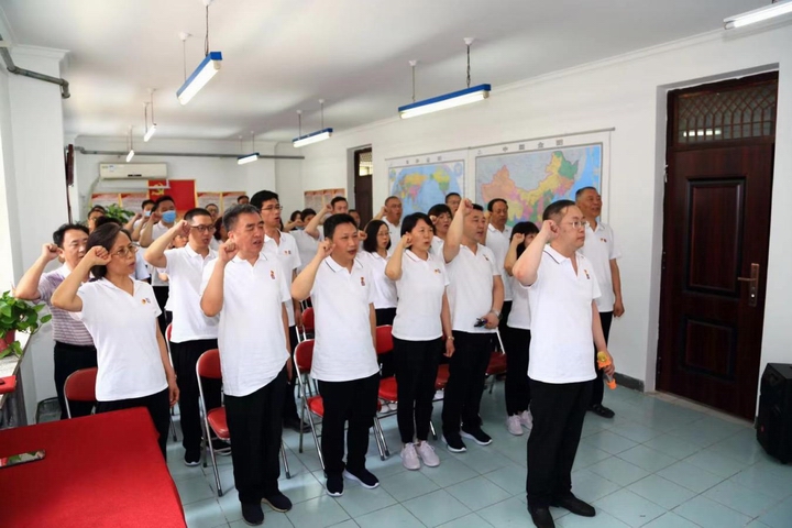 黨旗就是責(zé)任 6月30日組織新黨員進(jìn)行了入黨宣誓,老黨員再次重溫入黨誓詞,誓詞雖然只有80個(gè)字,但字字千鈞重、句句含義深,蘊(yùn)涵著非常豐富的內(nèi)容,既是一份政治誓言,也是一份忠誠(chéng)誓言,更是一份責(zé)任誓言,高度凝結(jié)了黨員應(yīng)履行的責(zé)任和義務(wù),應(yīng)遵守的紀(jì)律和規(guī)矩,時(shí)刻告誡黨員同志永遠(yuǎn)保持清醒,不忘黨的性質(zhì)、牢記黨的宗旨。知者行之始,行者知之成,要知行合一,才能推動(dòng)工作,勇于擔(dān)當(dāng)、奮勇前行。