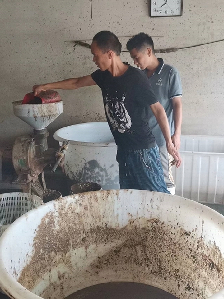 育苗車間的同志們有的磨料、投餌,有的整理餌料片子,忙的不亦樂乎。