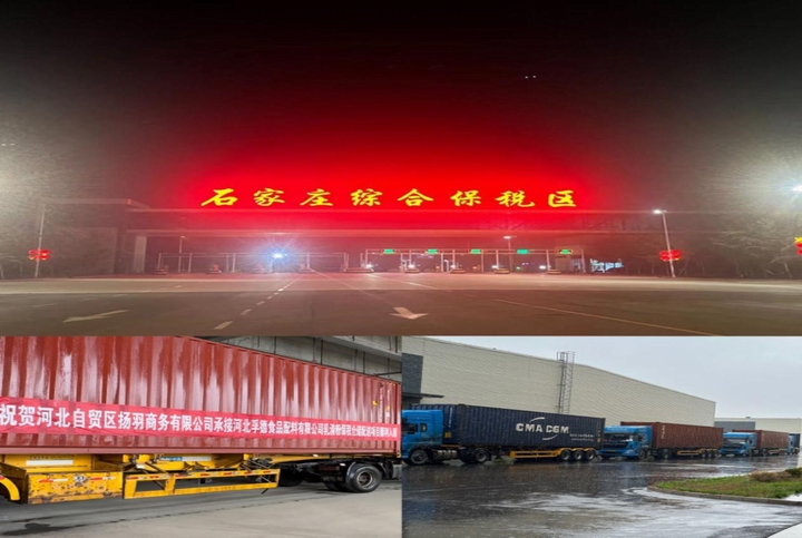 6月19 日發(fā)自天津港的 14 個(gè)集裝箱車隊(duì)駛?cè)肓?ldquo;石家莊綜合保稅區(qū)”,河北自貿(mào)區(qū)揚(yáng)羽商務(wù)有限公司承接的“乳清粉”保稅業(yè)務(wù)落地石家莊綜合保稅區(qū)。