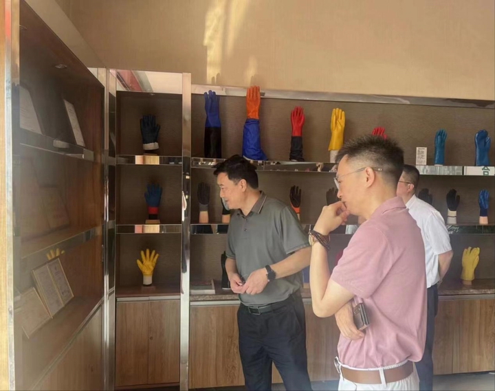 匯富三合總經(jīng)理趙際堯?qū)堅懸恍械牡絹肀硎練g迎,并詳細介紹了企業(yè)發(fā)展現(xiàn)狀和作為“專精特新”企業(yè)在各種手套的研發(fā)生產(chǎn)和國內(nèi)外銷售渠道建設(shè)方面取得的成績和經(jīng)驗,重點介紹了行業(yè)和公司本身的出口優(yōu)勢、行業(yè)發(fā)展趨勢和企業(yè)前景。