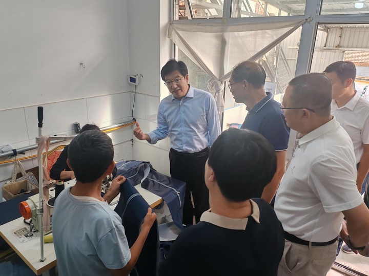 王建軍一行實地察看了由省外貿(mào)資產(chǎn)公司幫扶建設(shè)的李家堡箱包廠項目,了解項目幫扶成果,現(xiàn)場詳細(xì)詢問了箱包廠的投產(chǎn)時間、項目資金來源、經(jīng)營狀況和村民工資收入等情況。當(dāng)?shù)弥壳跋浒?lián)合體的就業(yè)人數(shù)已達(dá)90余人,工人月收入達(dá)到1500余元-4000余元時,王局長高興地說:箱包產(chǎn)業(yè)項目實實在在地帶動了更多的脫貧群眾就近就業(yè),不僅提高了村民家庭收入,同時也增加了村集體收益,體現(xiàn)了經(jīng)濟效益和社會效益雙豐收,為鄉(xiāng)村振興產(chǎn)業(yè)項目發(fā)展奠定了堅實基礎(chǔ)。