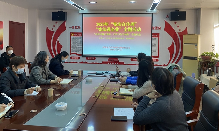 為深入學習貫徹習近平新時代中國特色社會主義思想,大力弘揚憲法精神,進一步增強干部職工的憲法意識,12月6日,東方信華按照省外貿(mào)資產(chǎn)公司安排部署,圍繞“大力弘揚憲法精神,建設(shè)社會主義法治文化”的主題,組織開展了“憲法進企業(yè)”活動,并邀請公司常年法律顧問河北世紀方舟律師事務所宋妮珊律師開展專題講座。
