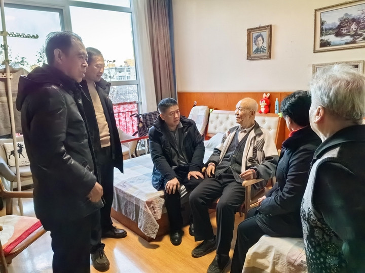 在新春佳節(jié)即將來臨之際,2024年1月22日下午,省國資委黨委委員、副主任楊建文帶隊走訪慰問省外貿(mào)資產(chǎn)公司91歲離休干部、老黨員張家模。省國資委黨建處處長郭軍平、宣傳外聯(lián)處處長張瑞娥、省外貿(mào)資產(chǎn)公司黨委副書記齊山水陪同慰問。
