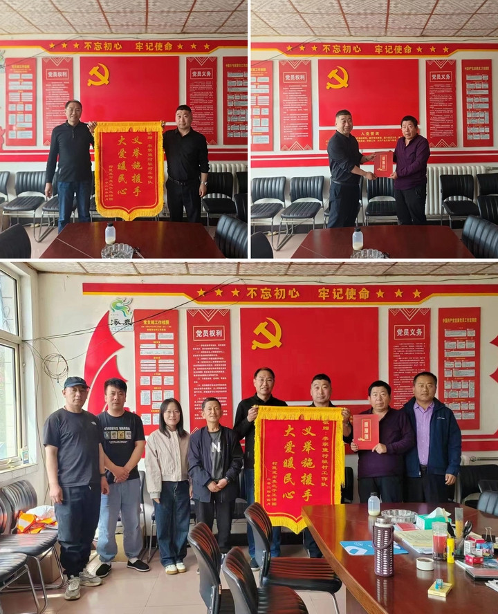 2024年4月26日上午,李家堡村老黨員之子王治國等到工作隊(duì)駐地,向省外貿(mào)資產(chǎn)公司駐李家堡村工作隊(duì)送來“義舉施援手,大愛暖民心”錦旗和感謝信,謝家堡鄉(xiāng)包村干部和村“兩委”班子成員共同參加了贈(zèng)送儀式。