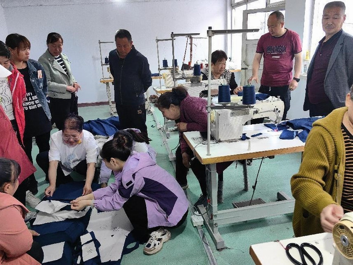 為使“馬家灣外貿(mào)服裝服飾加工廠”實(shí)現(xiàn)穩(wěn)步開局,在4月14日開始試運(yùn)行后,下沉工作隊(duì)和村“兩委”直面入廠工作村民年齡大,都是零基礎(chǔ)等實(shí)際困難,積極協(xié)調(diào)合作方,有針對性開展技能指導(dǎo)、現(xiàn)場示范、強(qiáng)化培訓(xùn)、答疑解惑,以增強(qiáng)大家逐步熟練操作服裝縫紉設(shè)備的信心和耐心,經(jīng)過一個月的不懈努力,首批近500件服裝制成品順利完工,5月16日通過合作方的驗(yàn)收。雖然首月產(chǎn)成品數(shù)量不多,還有諸多不足尚需改進(jìn),但村民們親手制作的服裝制品,走出山村小廠,實(shí)現(xiàn)外銷,初見成效,深受鼓舞。這成果來之不易,標(biāo)志著馬家灣村在產(chǎn)業(yè)振興的路上,邁出了可喜的一步。
